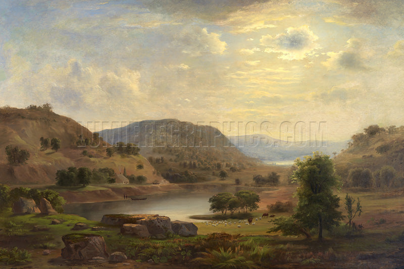 This oil-on-canvas painting was created in 1848 by African-American landscape artist Robert S. Duncanson (1796-1886). The pastoral scene painted here is thought to represent the promised land of freedom that escaped slaves could reach by swimming across the Ohio River to the free states of the North. (Smithsonian)