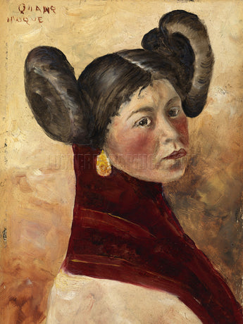This oil-on-paper portrait was created ca. 1891. The artist of this lovely portrait of a young woman—in what southwestern Americans call “butterfly whorls”—is unknown but thought to be South American. (Smithsonian)