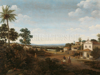 This oil-on-canvas painting was created ca. 1667 by Dutch Golden Age landscape artist Frans Janszoon Post (1612-1680). Post spent time in Brazil on the invitation of the Dutch governor during the Dutch occupation of northeastern Brazil (Dutch Brazil). Although he liked the idea of animals living together harmoniously, he portrayed a boa constrictor in the left foreground of this painting eating a six-banded armadillo. (Rijksmuseum)