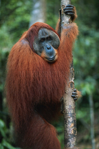 Orangutans are found in the wild only in the Southeast Asian islands of Borneo and Sumatra. They spend their entire lives in trees, swinging from branch to branch and sleeping in treetop nests. Orangutans stand four to five feet tall, weigh between 75 and 180 pounds, and live 30 to 40 years in the wild.