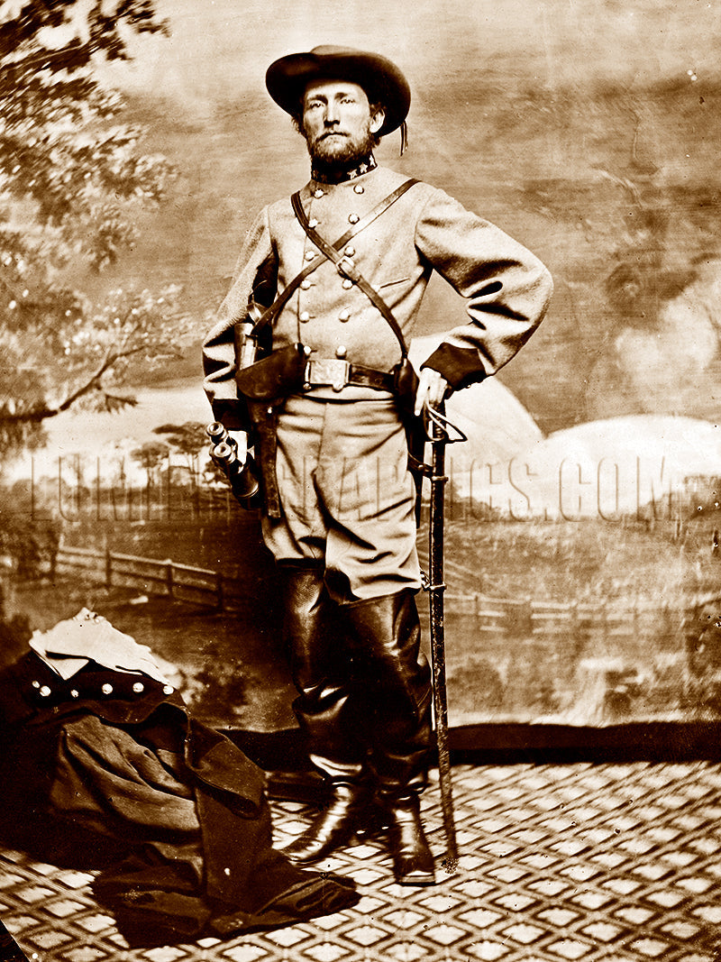 Confederate Col. John Singleton Mosby (1833-1916) formed and commanded the 43rd Battalion Virginia Cavalry, Confederate partisan rangers also known as Mosby’s Rangers. Mosby was greatly respected for his surprise attacks, quick raids and uncanny ability to disappear with his men from pursuit of the Union Army. For this he was nicknamed the “Gray Ghost.”