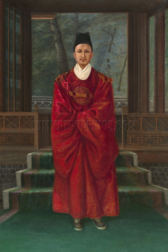 This oil-on-canvas painting was created ca. 1893 by Bulgarian-born American photographer and painter Antonion Zeno Shindle (1823-1899). Shindle’s passion in life was exploring various cultures and documenting what he learned. This painting is a full-length portrait of a man dressed in traditional Korean royal attire. (Smithsonian)