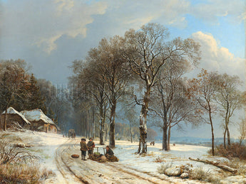 This oil-on-canvas painting was painted by Dutch landscape artist and lithographer Barend Cornelis Koekkoek (1803–1862) ca. 1836. This peaceful scene probably took place in a hilly region of Gelderland or the German region of the Lower Rhine. There are a number of children and others sledding or otherwise enjoying a snowy day. (Rijksmuseum)