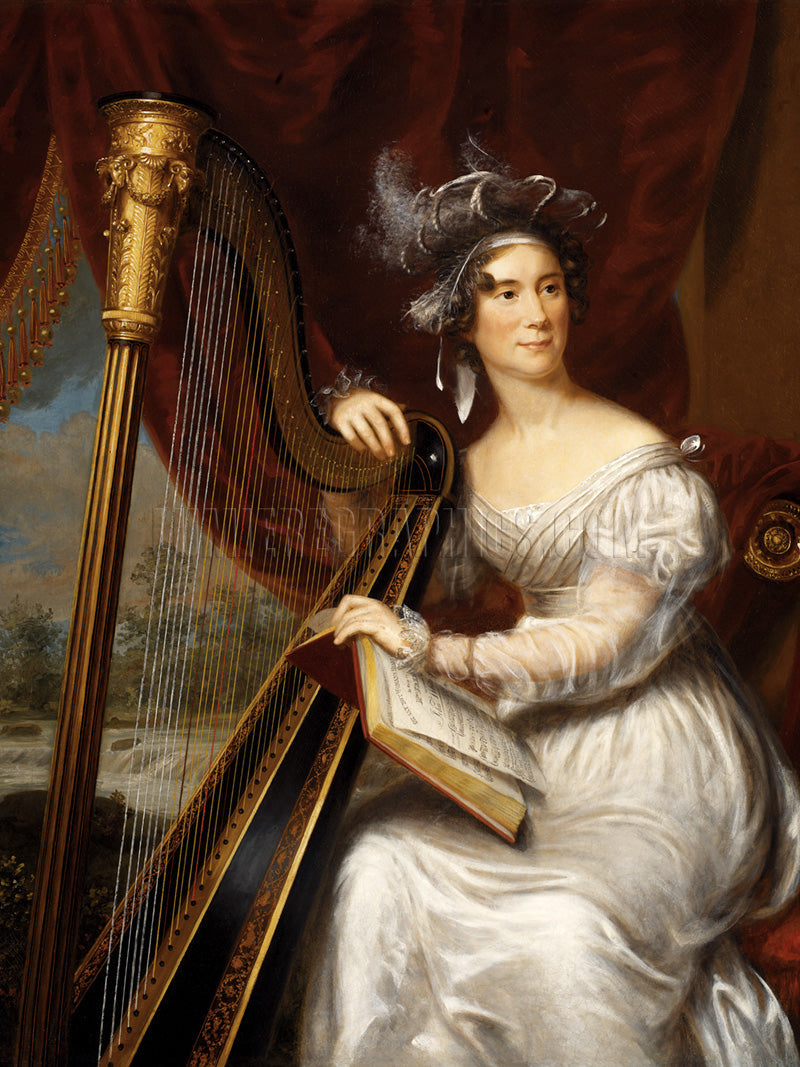 This oil-on-canvas painting was created ca. 1824 by American portrait artist Charles Bird King (1785-1862). King portrayed Louisa Catherine Johnson Adams (First Lady of the United States from 1825 to 1829) playing the harp, with a music score in her hand (Smithsonian)