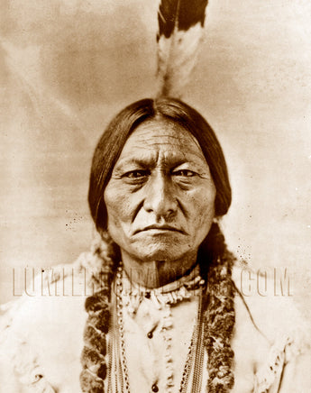 This famed warrior, medicine man and military leader of the Hunkpapa Sioux fled to Canada to avoid confinement but surrendered due to harsh living conditions. He was shot and killed in 1890 resisting arrest concerning the Ghost Dance. Photographed in 1885 by David F. Barry.