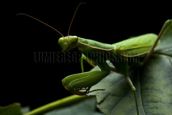The praying mantis is known for its iconic pose, with an upright posture and large, bent front legs. Their strong forearms have been adapted to capture and hold prey. The word "mantis" comes from the Greek word for prophet because of their "praying" posture.
