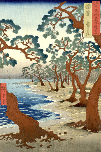 This woodblock print portrays a location from Japan’s Harima Province and is part of a series called “Famous Places in the Sixty-odd Provinces.” It was created ca. 1853 by Japanese artist Utagawa Hiroshige (1797-1858), considered the last great master of ukiyo-e art or woodblock print. (From the collection of the Rijks Museum, Amsterdam)
