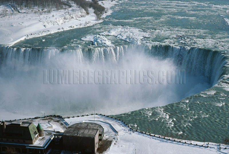 The Horseshoe Falls are the largest of the three falls in the larger Niagara Falls system, a popular natural wonder on the US-Canadian border and visited by over 8 million people a year. The falls are especially beloved for their curved, horseshoe shape, as shown here.