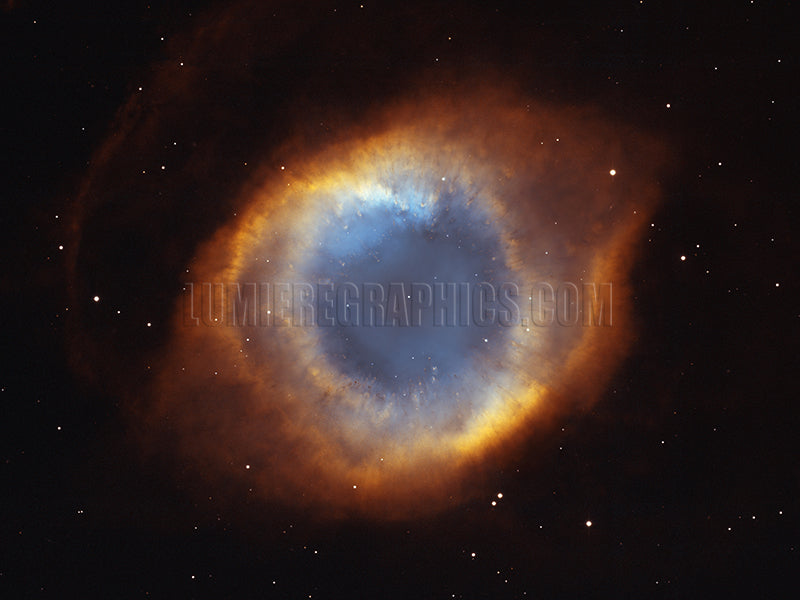 “God’s Eye” is a nickname for the Helix Nebula, also known as NGC 7293 or Caldwell 63. The nickname was applied because from Earth, the nebula looks like a giant eye. It is a cloud of gas and dust formed from the gases blown off by a dying star. It is relatively close to Earth, about 655 light-years away. (Hubble Space Telescope)