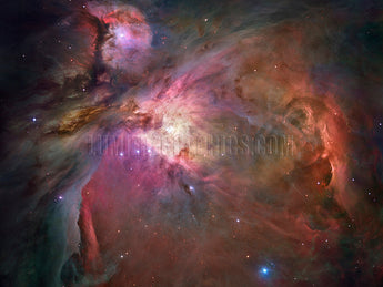 The Orion Nebula, also known as Messier 42 (M42), is a stellar nursery in the constellation of Orion. It is a bright emission nebula, or a cloud of gas and dust whose light is due to ionization from nearby stars. Ionization causes the gas to glow with a reddish light. The Orion Nebula is about 1,344 light years away from Earth. (Hubble Space Telescope)
