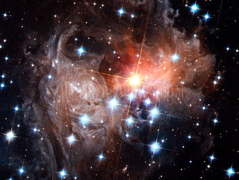 The red supergiant star at the center of this image, named V838 Monocerotis (V838 Mon), produced a dramatic light echo or pulsing display. The light from the stellar flash lit up the surrounding dust clouds. While it looked like the star’s material was pulsing outward, it was just the flash traveling fast and reflecting off particles of dust. (Hubble Space Telescope